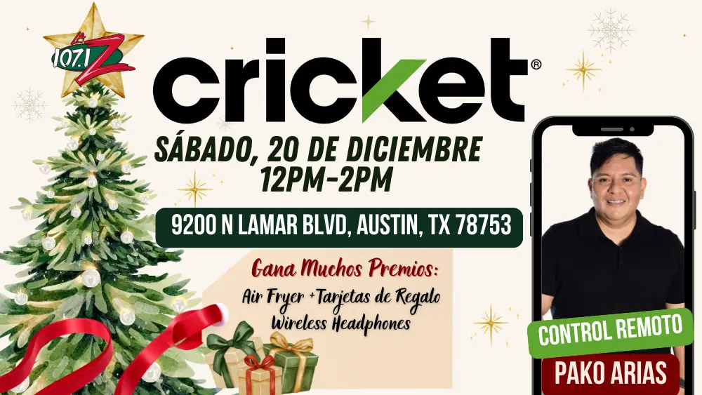 Acompaña a Pako Arias y al equipo de 107.1 La Z este Sábado, 20 de diciembre en el Cricket Wireless ubicado en el 9200 North Lamar a partir de las 12 del mediodía.